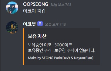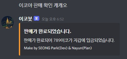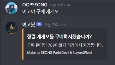 if (message.content === '์ด์ฝ์ผ ๊ตฌ๋งค ํ์ธ ์บ์บ์ค') {